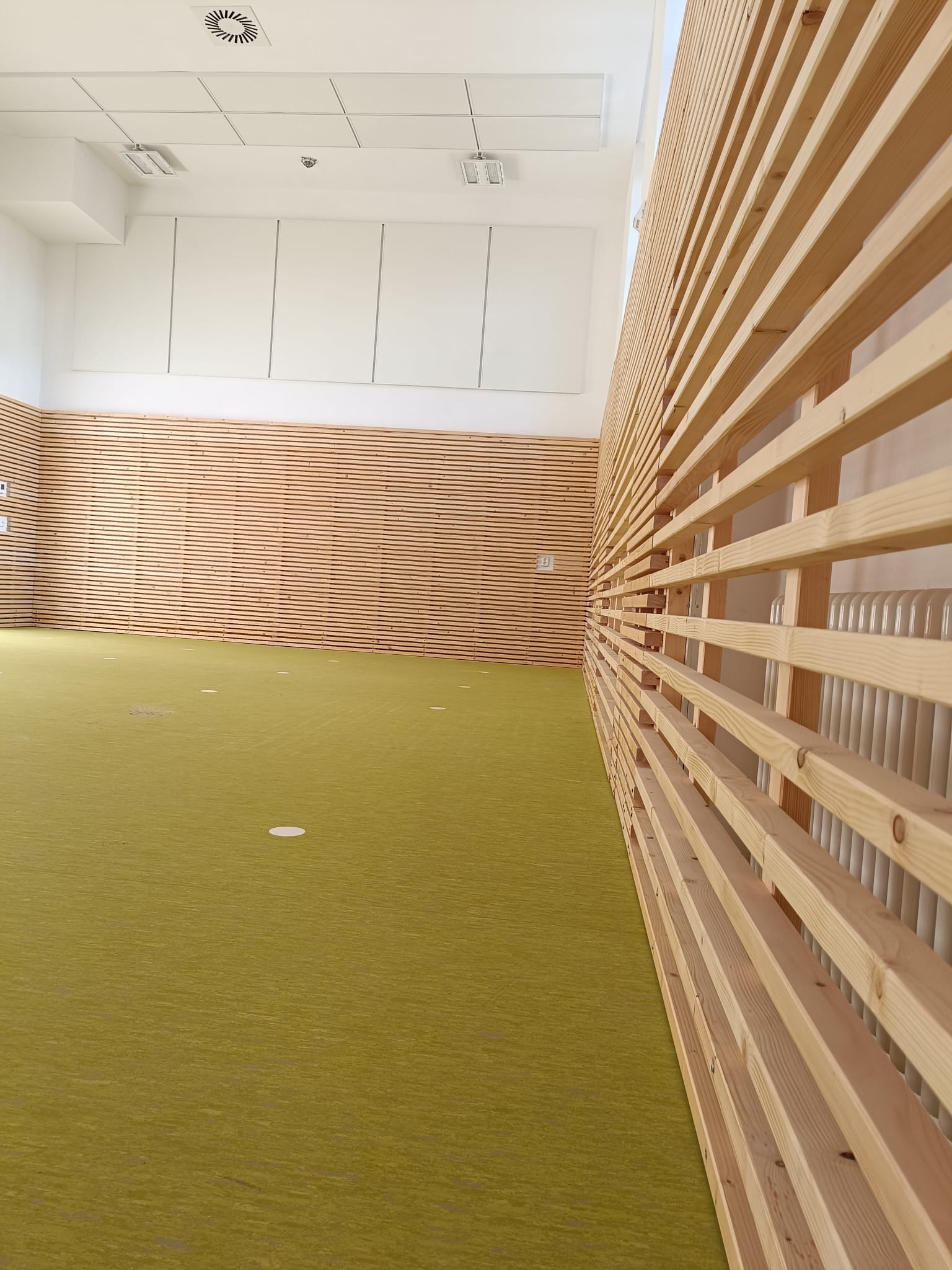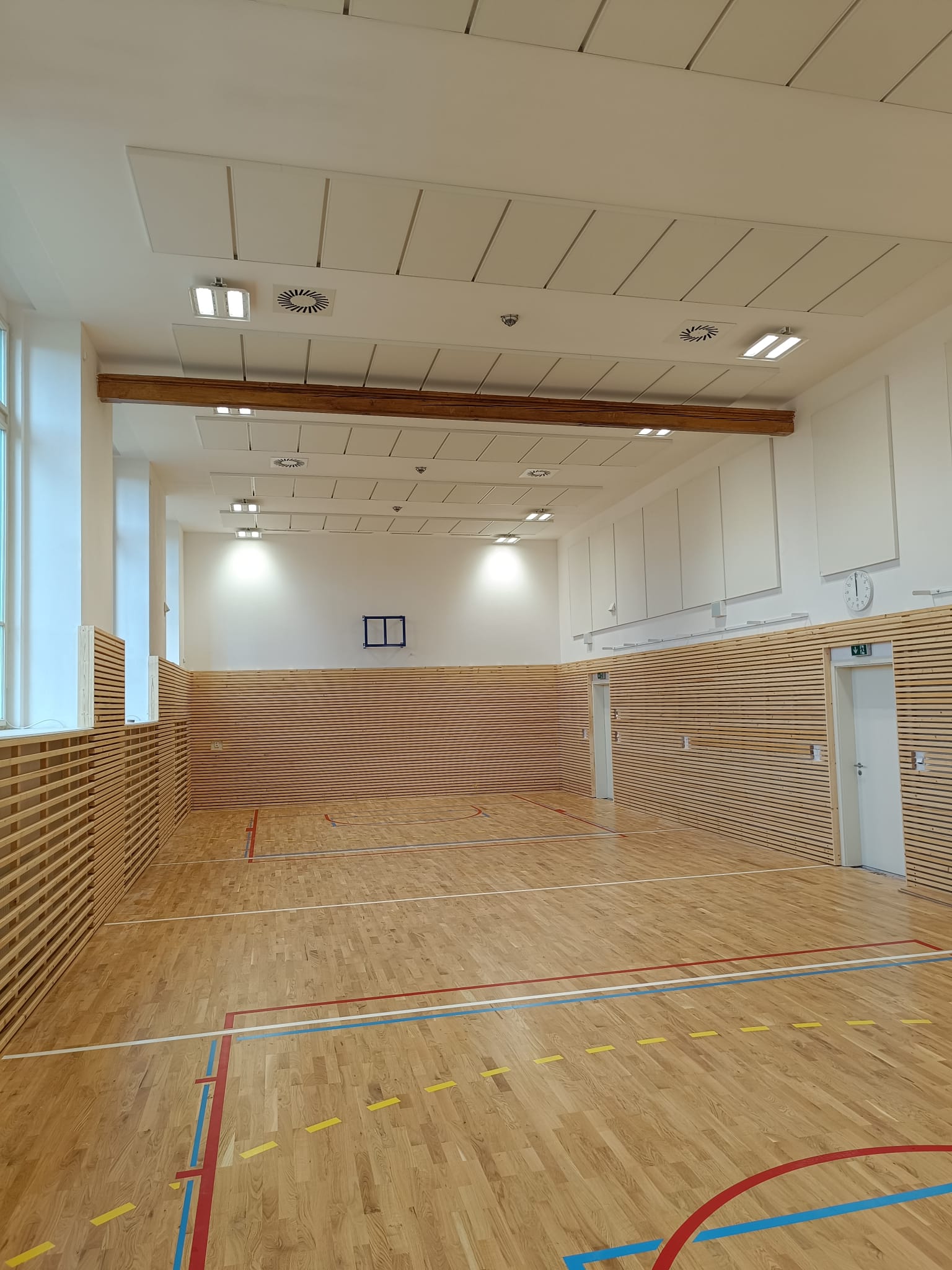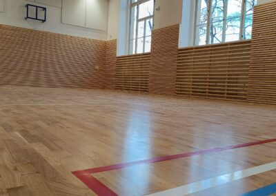 V únoru 2025 jsme dokončili pro sdružení stavebních firem OHLA ŽS a.s. a SYNER s.r.o. – Obklad tělocvičen v ZŠ Strašnice Praha. Jednalo se o obklad dřevěnnými profily stěn vč. vyjimatelných dílů pro topení a obklad stěn z nehořlavých materiálů v jídelně.